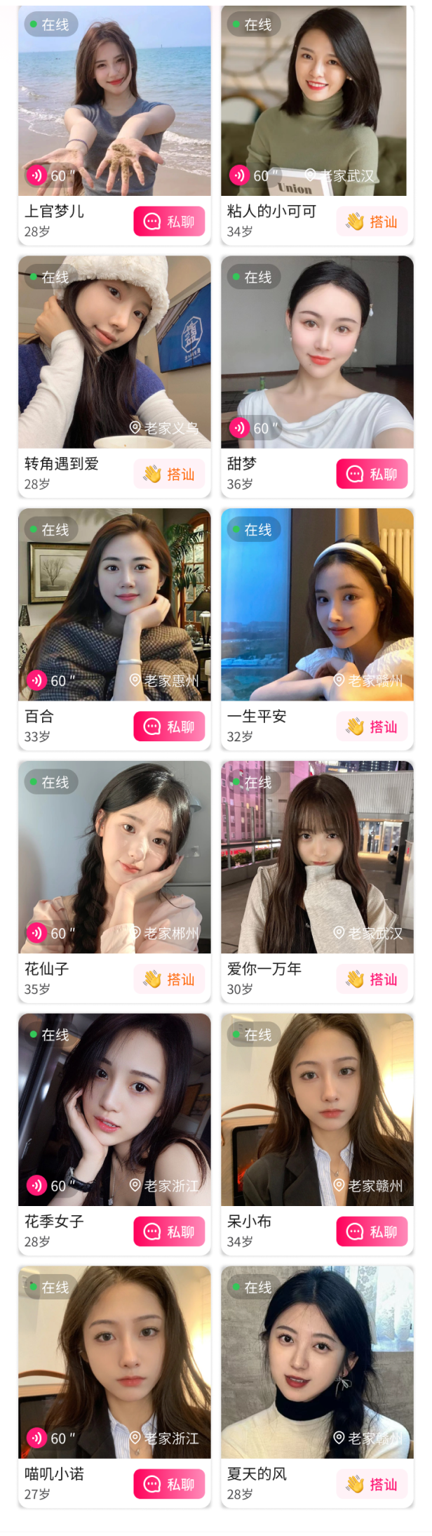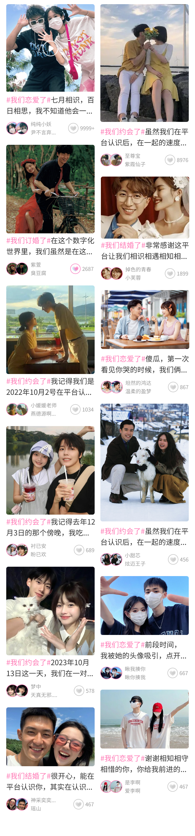 通过智能匹配和破冰小游戏,用户的每一次相遇都能够充满惊喜,让聊天成为 爱情的催化剂。平台也注重一对一的深度交流,鼓励用户尽情畅聊,无论是文字、 语音还是视频,都由你选择。同时,为了保证聊天交友环境的安全、绿色与纯净,本平台采用了三重实名认证,建立了相关的巡查机制,确保每位用户真实可靠,社区氛围友好温馨。